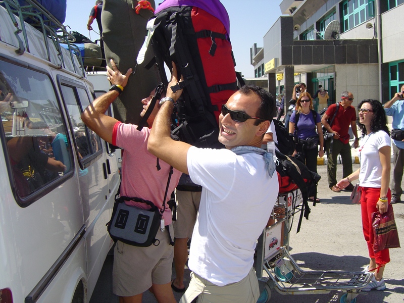 11:00 AM. One of the guides, Gioxu, was at the airport waiting for our arrival. Two transport vans were waiting there and we started loading our bags on top of the vans. The guide also collected our passports, in order to show all our proper identifications at the numerous military checkpoints. We get split into two teams and we get in the vans. The vans do not look in great condition, at least not by European standards. At 11:00 AM we start our journey towards Dogubayazit. The atmosphere in the car is fantastic and joyful. We joke and we laugh while observing our surroundings. We are also a bit concerned about the checkpoints. After all, we are three Armenians in the van and clearly, we are not considered very welcome.