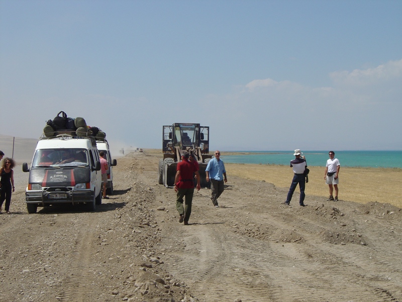 Our joy gradually dissipates. The journey to Ararat seems endless. We are driving for more than an hour and we are still next to Lake Van. The roads are in bad condition even though at some points we notice that there are road works. We take a comfort break next to the lake. Almost everyone needs it. We are having discussions in the car about drinking water and the food that we should eat while on Mountain Ararat. We do not trust the food and water that the locals will give us, especially after hearing that the previous teams had diarrhoea issues. We decide to buy our own water and only eat rice and pasta