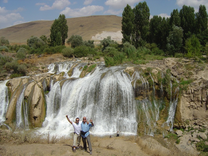 1:00 PM. After two hours of driving we reached a small oasis, the only place where we saw some trees and green. There was a beautiful waterfall. It’s not a big one and it’s not something special compared to other waterfalls around the world. But in this part of the world, it is the only nice thing. There is a restaurant right opposite the waterfall and we are having lunch, fish from the lake. Gioxu wants us to write some information about ourselves. Name, father’s name, occupation, blood type, address, etc… At that point, I told him that I am Armenian. I remember his reply. “Are you Armenian? Knouni is an Armenian last name?” Of course, I replied. After that short discussion, I think that I had his full attention. Not necessarily in a bad way.